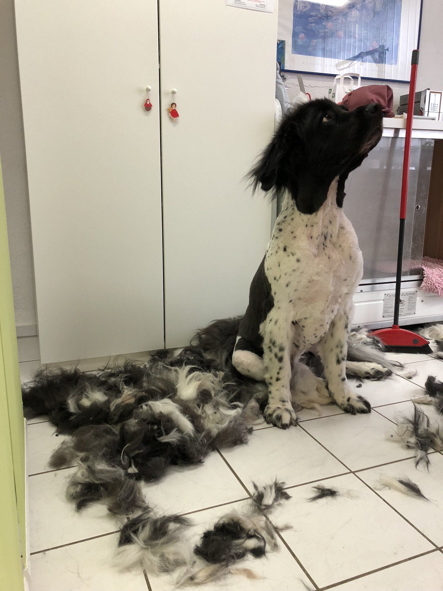 aber auch Hundekinder, bei denen nur noch der Kurzhaarschnitt machbar war.